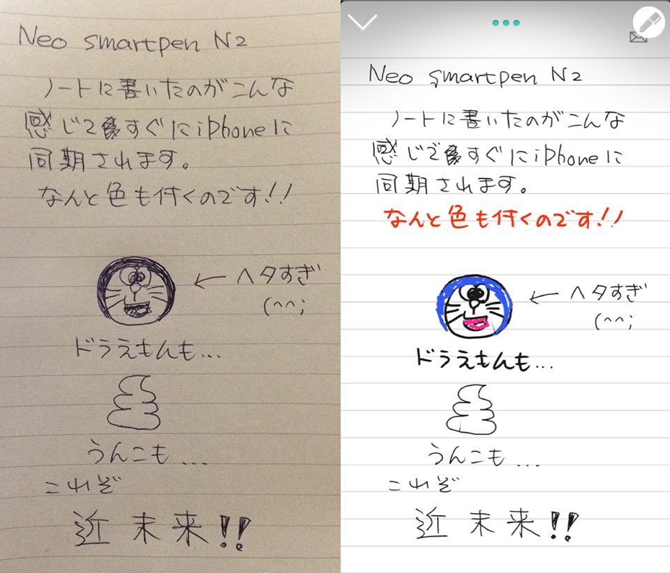 Neo Smartpen N2 投稿日時:2015-05-01 クラウドファンディングでの初出資の品がようやく届きました。 このペンでノートに書き込むと同時にデジタル化されてiPhoneに・・・スゴ過ぎ!! こんな感じに、、、色まで付けれるのだ。 Neo Smartpen N2