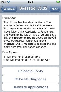 脱獄するといろんなアプリをじゃんじゃんインストールできる訳だが、どうもiPod touchはパーティションが二つに分かれていて、アプリがインストールされるシステム領域は300MBしかないらしい。