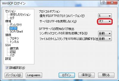 WinSCPを起動して出てくるログイン画面で以下の部分をオフに変更します。なんでかこれをしないとうまいこといきませんでした。