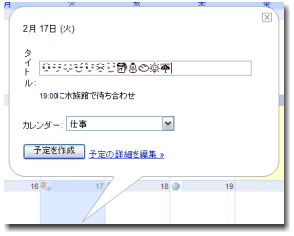 iPhoneの絵文字をパソコンで表示する外字フォントがとりあえずひと通りできあがったので公開します。先頃公開したiPhone絵文字簡単入力ツールを利用すると、↓のようにgoogleカレンダーとかに簡単に入力できちゃったりします。