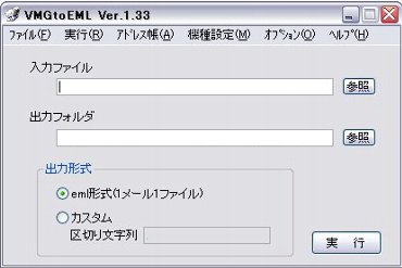 VMGtoEMLはvodafoneのSDカードスロットを装備したSHARP系端末にて、SDカードに一括転送したvMessage形式データ(xxxx.vmg)をeml形式(yyyy.eml)に変換するソフトです。メールデータをパソコンへバックアップし、普段使用しているメールソフトで閲覧可能とするのを主目的としているため、編集したり再度V602SH本体へと戻すといった機能はありません。