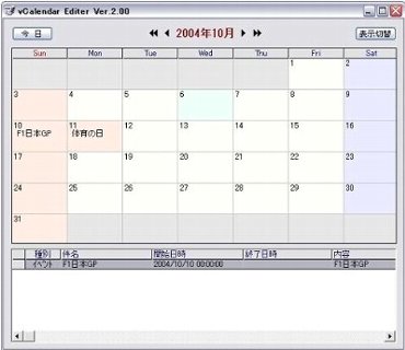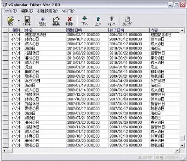 vCalendar EditerはvodafoneのSDカードスロットを装備したSHARP系端末にて、SDカードに一括転送したvCalendar形式データ(*.vcs)を読み込み編集し、再度本体に書き戻し可能なvCalendar形式ファイルを作成するソフトです。